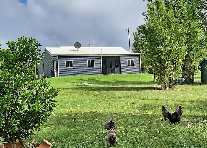 Sanctuary Hills Cottage Takura ligt binnen 15 minuten met de auto van Australiana Cottage Crafts en nodigt gasten uit om te ontspannen op een patio.